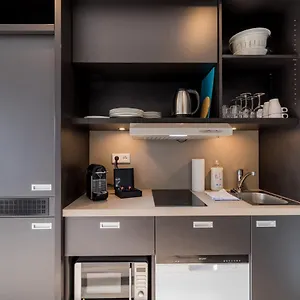 74 Zimmer im Nena Apartments - Kreuzberg 61 empfangen Sie mit verschiedenen Annehmlichkeiten wie einer Sitzecke und einer Küchenzeile. Zur weiteren Ausstattung gehören ein Wasserkocher. Eine getrennte Toilette und eine Dusche sowie ein Haartrockner und Badelaken sind hier ebenfalls vorhanden.